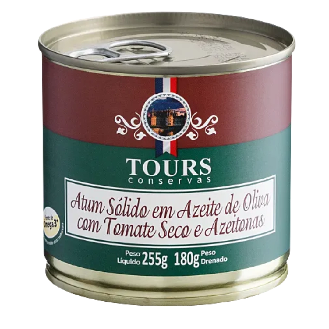O Atum Sólido em Azeite de Oliva com Tomate Seco e Azeitonas é um produto artesanal, exclusivo no mercado e que tenta trazer sabores da culinária do Mediterrâneo. Ele é envasado a mão e consiste em um lombo de atum selecionado, cortado em segmentos transversais, tendo como líquido de cobertura azeite de oliva e acompanhado de tomate seco, azeitonas verdes, orégano e pimenta do reino branca.