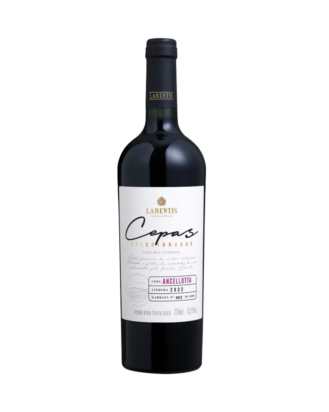 Seleção das uvas manualmente nos melhores vinhedos da Família Larentis. Elaboração tradicional, com controle de temperatura durante a fermentação e maceração prolongada. Realizou a fermentação malolática. Envelhecimento em barricas de carvalho por 12 meses. Depois de engarrafado, descansou na cave por no mínimo um ano antes de ser comercializado.