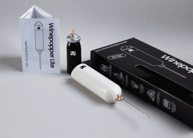 Saca-Rolhas Winepopper Lite funciona a partir de um refil de gás inerte, que cria pressão para abrir a garrafa sem nenhuma dificuldade e sem prejudicar as propriedades do vinho. Itens do Kit: 1 x Saca-rolhas Winepopper 1 x Tubo de Refil (30 aberturas por tubo)